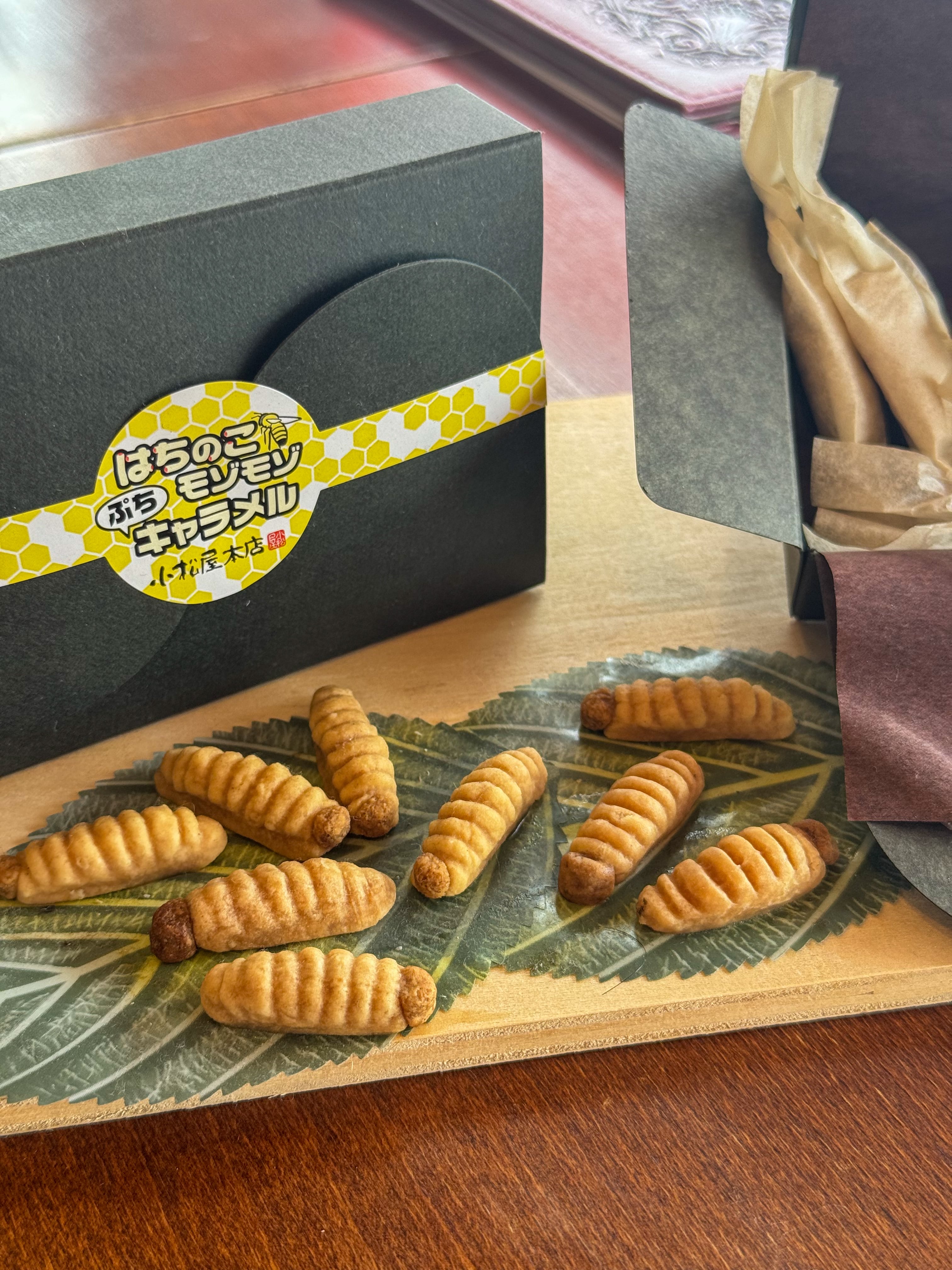 秋田県横手市の老舗・小松屋本店から、見た目のインパクトが凄すぎる「はちのこモゾモゾプチキャラメル」が登場しました。