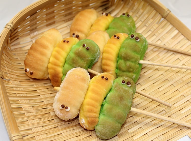 仲良し♪いもむし三兄弟【冷凍発送】和菓子 白あん 1串3匹 お菓子 焼き菓子 おもしろ 立体 虫 昆虫 取り寄せ スイーツ 手づくり かわいい 子供 ネタ サプライズ プレゼント ギフト お土産 キッズ こども 茶菓子 茶請け 和風 和スイーツ ホワイトデー 花見 子供の日 冬 春